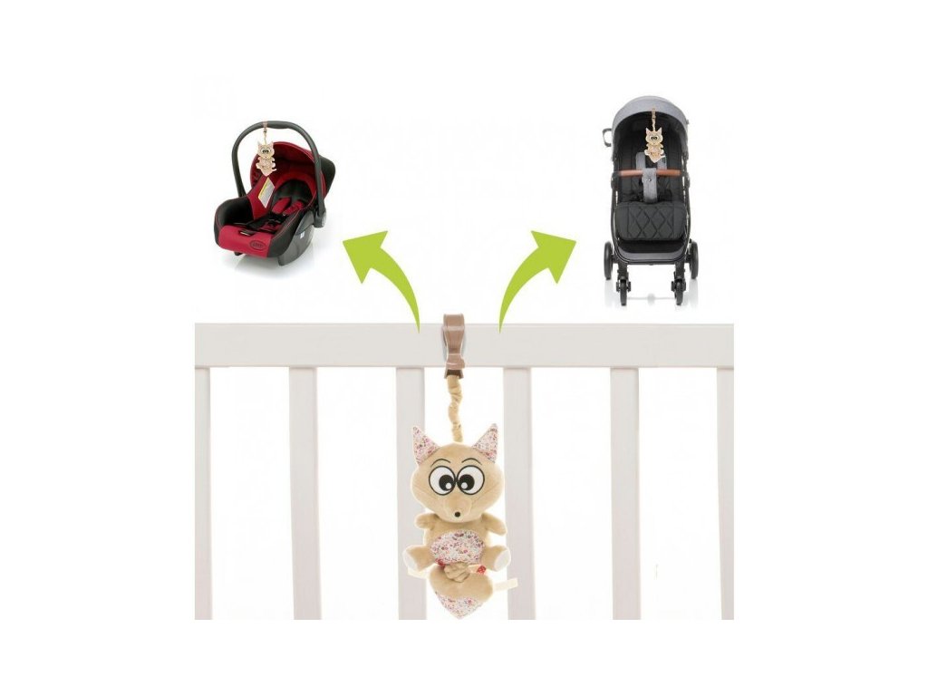 Má praktický klip, ktorý môžete pripevniť na kočík, postieľku alebo bezpečnostnú sedačku. Vďaka tomu bude hračka Vášmu dieťatku vždy nablízku.