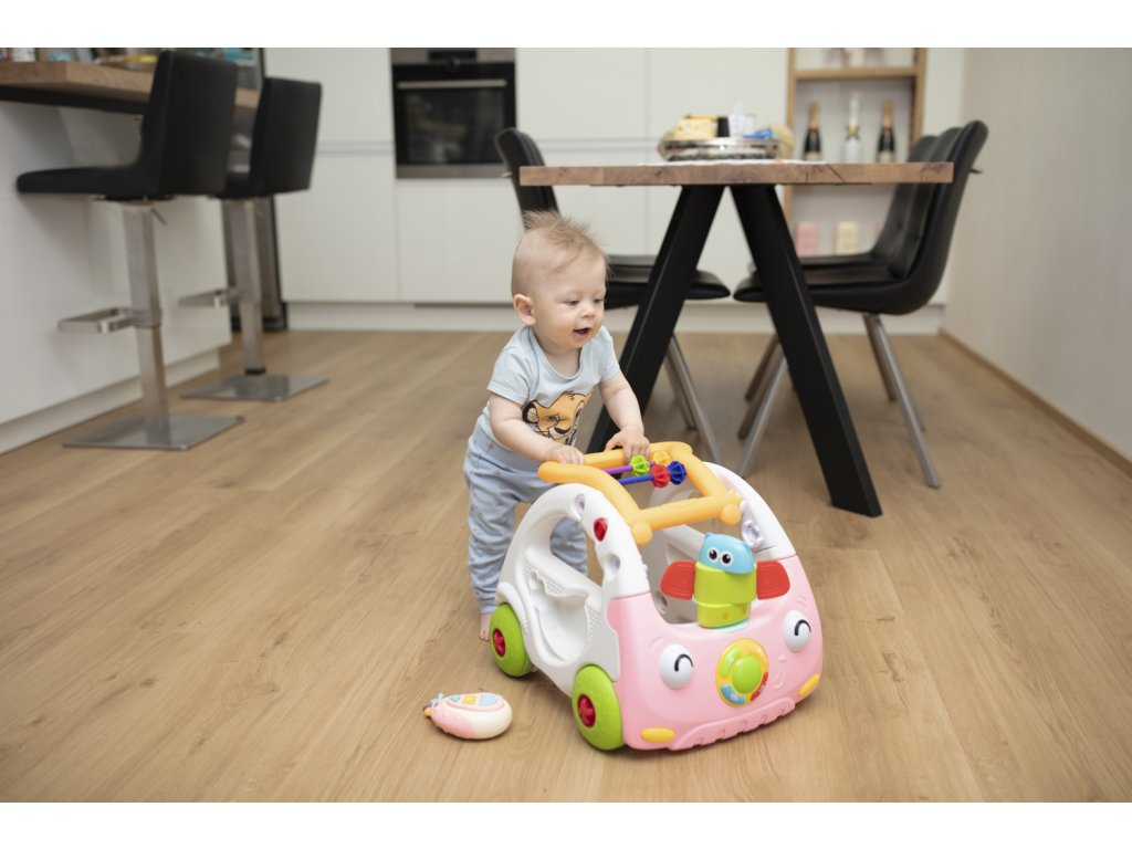 Roztomilé chodítko v tvare autíčka bezpečne prevedie dieťa prvými krôčikmi. Od 6 mesiacov slúži ako interaktívna hračka. Na boku chodítka sú umiestnené aktivity kocky, ktoré rozvíjajú motoriku a fantáziu. Ďalej je chodítko vybavená skladačkou či počítadlom. Súčasťou je aj interaktívny kľúč s tlačidlami, vďaka ktorým autíčko vydáva zvuky a svetelné efekty.