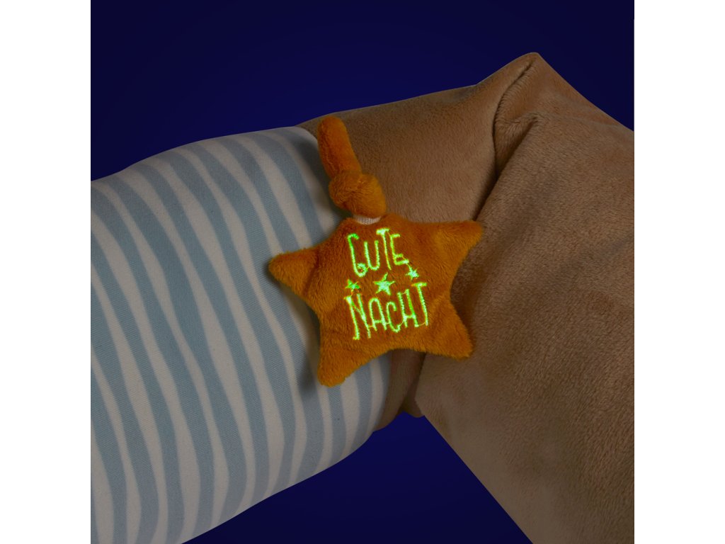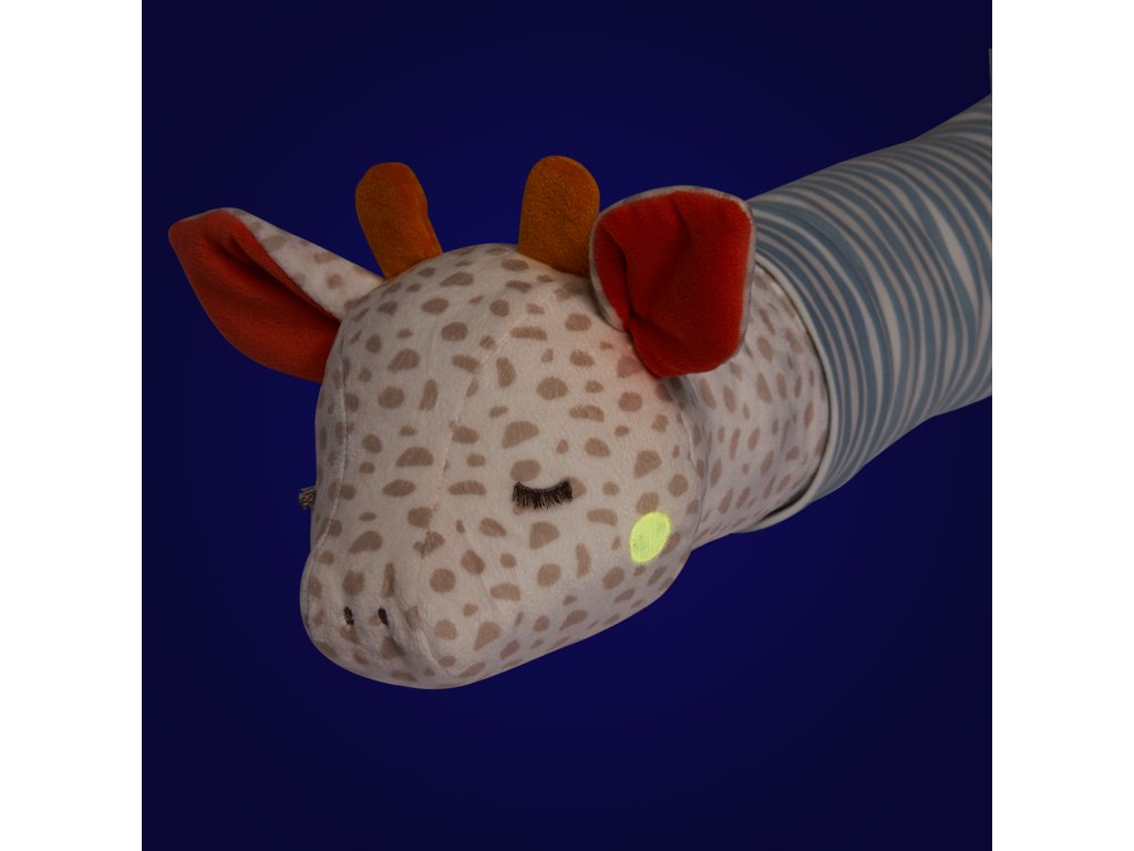 Roztomilá pohodlná žirafa, která promění dětskou postýlku v dokonalé a útulné místo na spaní. Lze ji použít jako zábranu proti průvanu, ochranu proti pádu, měkký polštář či mazlíka. Žirafa je vybavená světelnými prvky, které pomohou v noci dítěti lépe usnout a zbaví ho strachu ze tmy. Plyšáka je možné prát v pračce na jemný program.