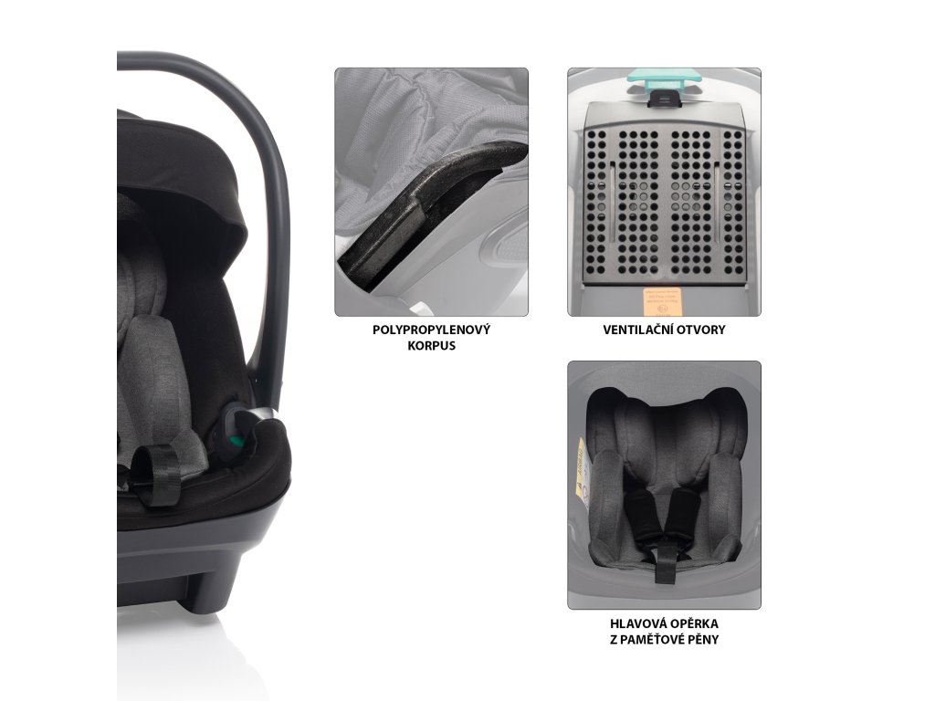 normu i-Size. Korpus je vyrobený z polypropylénu, ktorý dokáže perfektne pohltiť