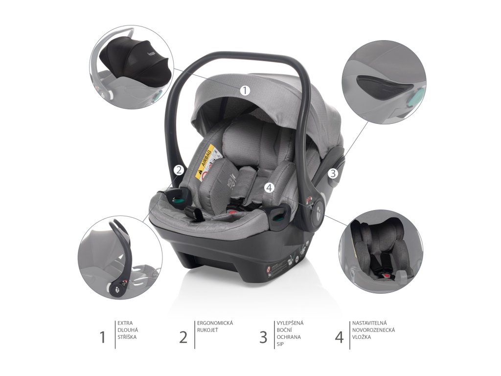 normu i-Size. Korpus je vyrobený z polypropylénu, ktorý dokáže perfektne pohltiť