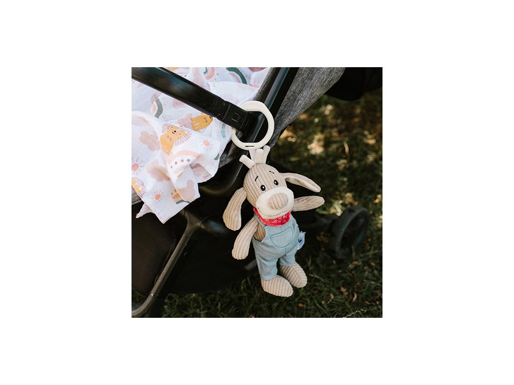 Má praktický klip, ktorý môžete pripevniť na kočík, postieľku alebo bezpečnostnú sedačku. Vďaka tomu bude hračka Vášmu dieťatku vždy nablízku.