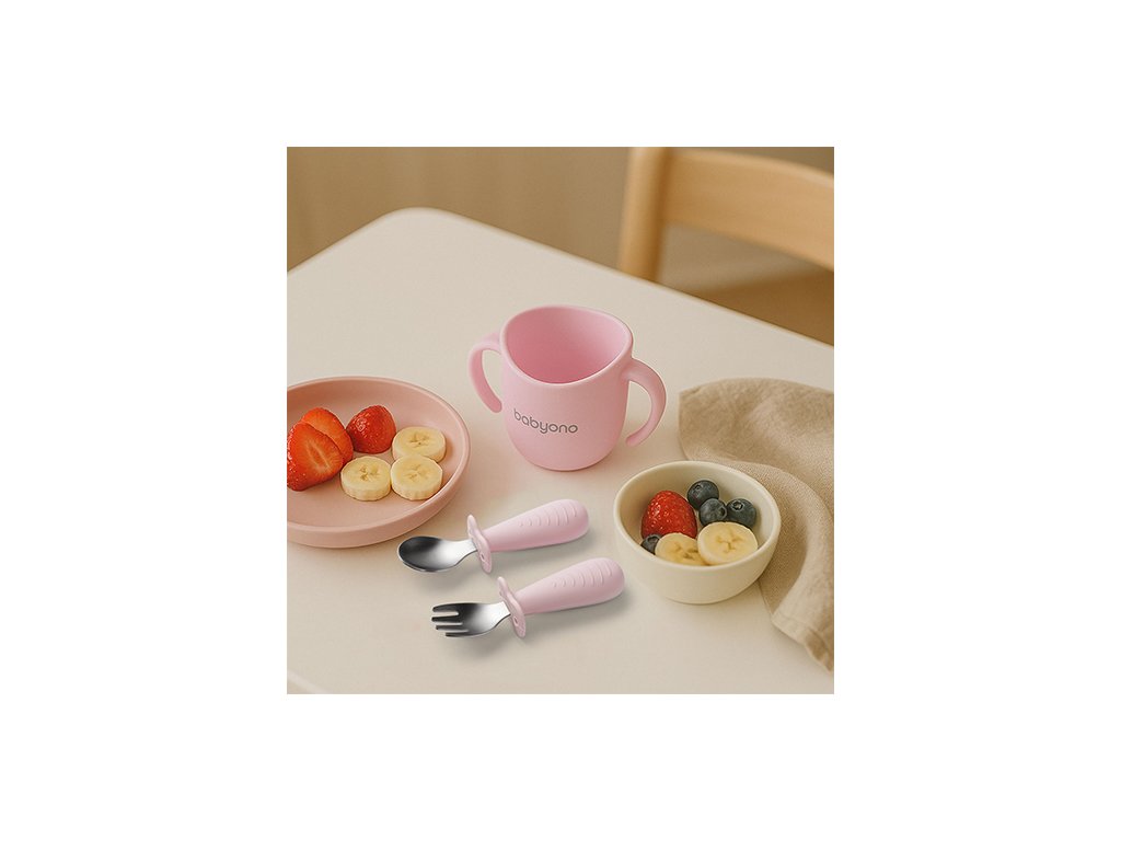 BABYONO 1463/04 Hrnček ergonomický s uškami 120 ml ružový