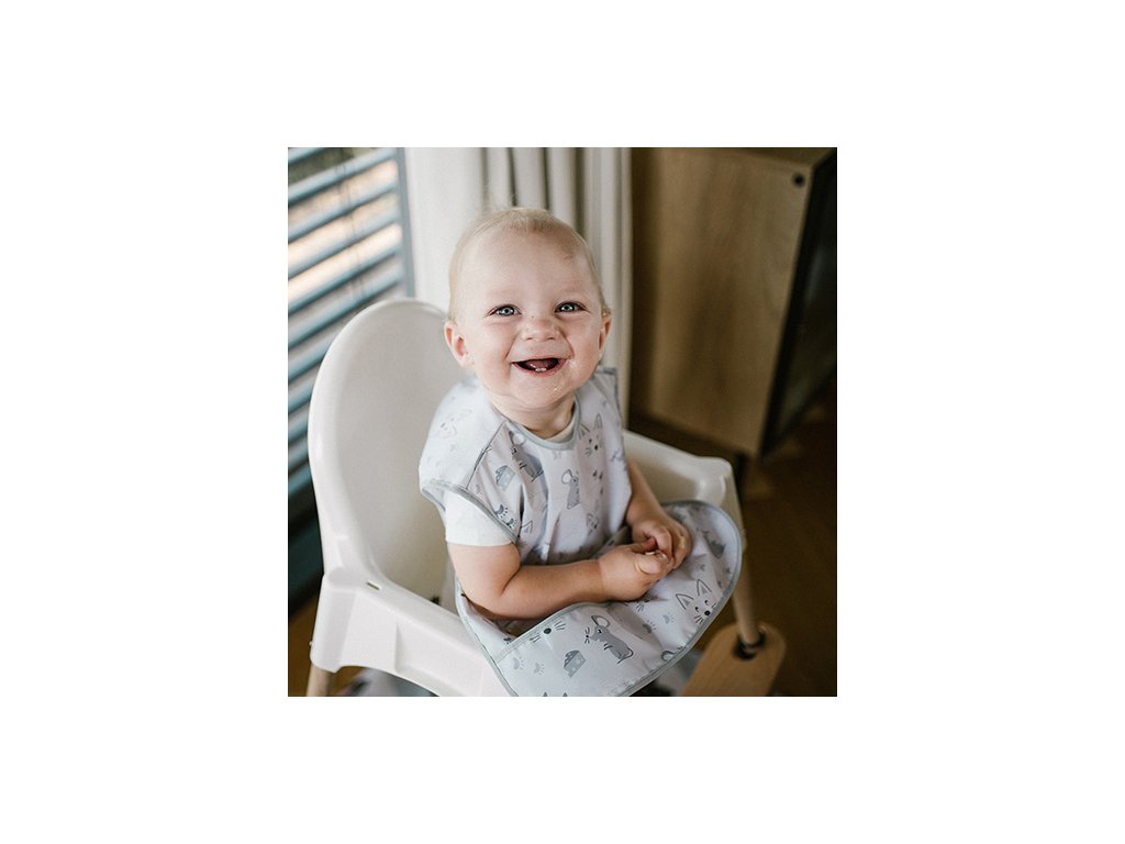 Vrecko na omrvinky - praktické riešenia sú vždy tie najlepšie. Vrecko vpredu podbradníka zachytáva zvyšky jedla.