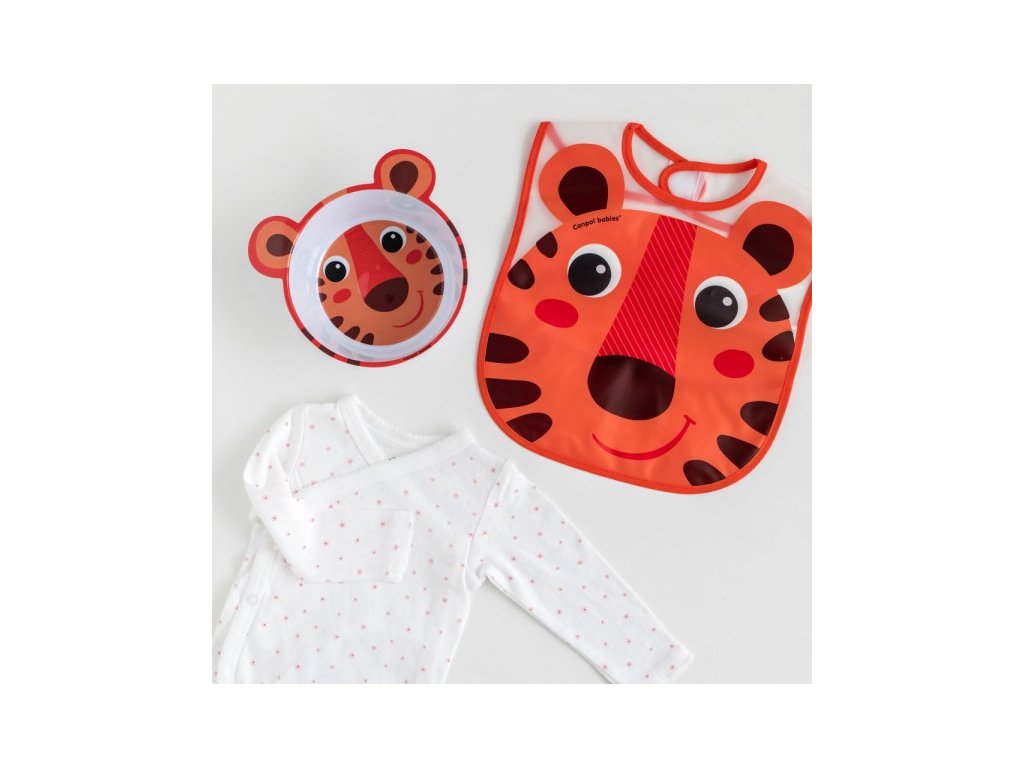 Podbradník účinne chráni oblečenie dieťaťa pred zašpinením počas jedenia. Má veľké vrecko, ktoré zachytáva zvyšky jedla, a je z mäkkého a ľahko umývateľného materiálu. Podbradníky majú originálne farebné dizajny. Pohodlné zapínanie na suchý zips.