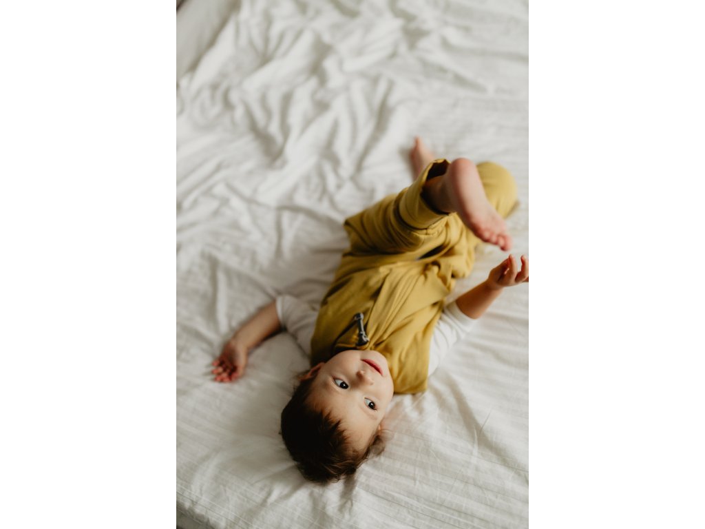 Nohavice mají zakončení stejné, jako u některých dětských bodyček a overalů - okraji nohavic tak můžete jednoduše překrýt nožky dítěte a zajistit jim ještě větší teplo. Nohavičky můžete překrýt až v průběhu spánku podle toho, zda je dítěti teplo nebo zima.