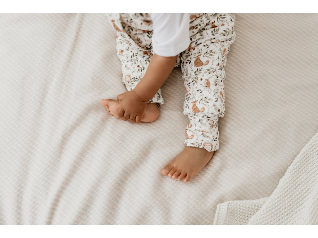 Nohavice mají zakončení stejné, jako u některých dětských bodyček a overalů - okraji nohavic tak můžete jednoduše překrýt nožky dítěte a zajistit jim ještě větší teplo. Nohavičky můžete překrýt až v průběhu spánku podle toho, zda je dítěti teplo nebo zima.