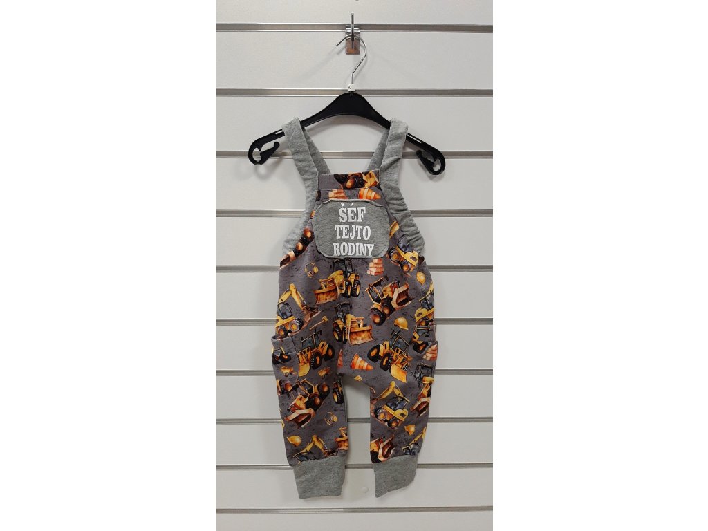 Bavlnené tepláky na traky pre deti s potlačou Šéf tejto rodiny. Zloženie: 95% bavlna, 5% elastan. Vyrobené na Slovensku.