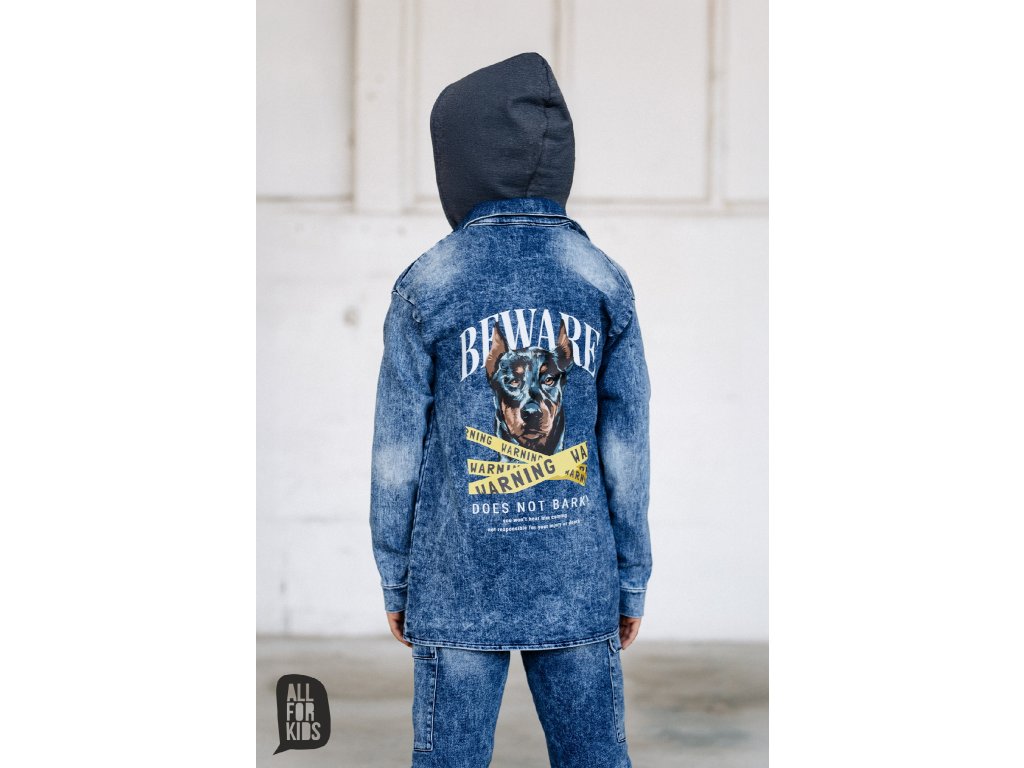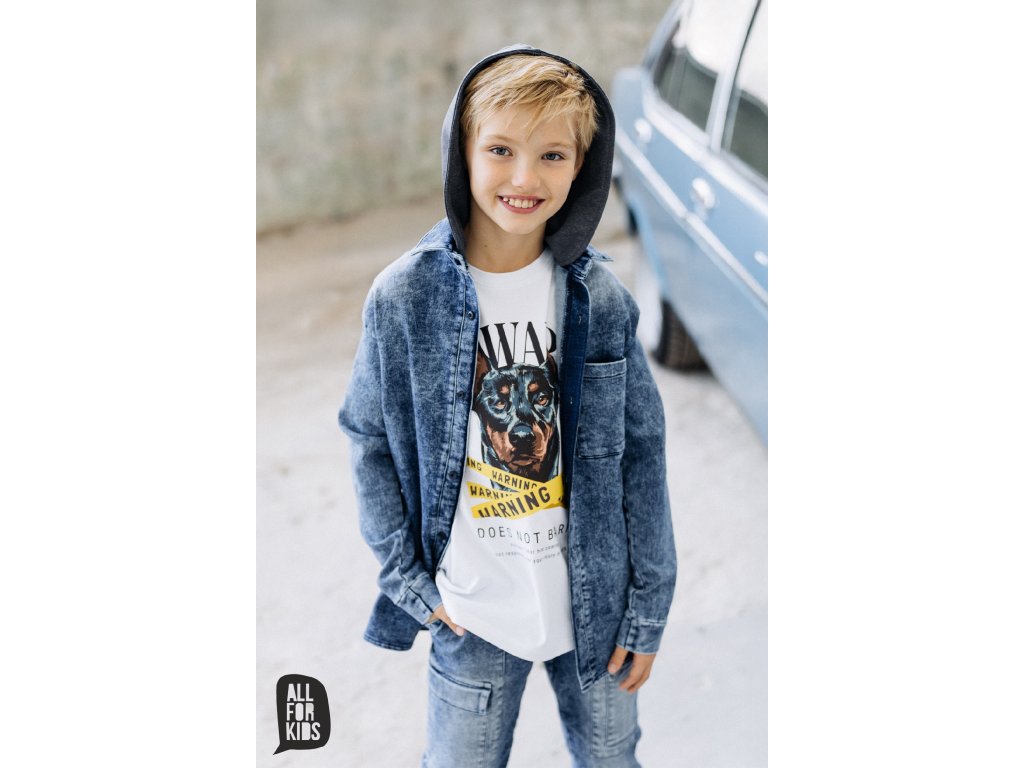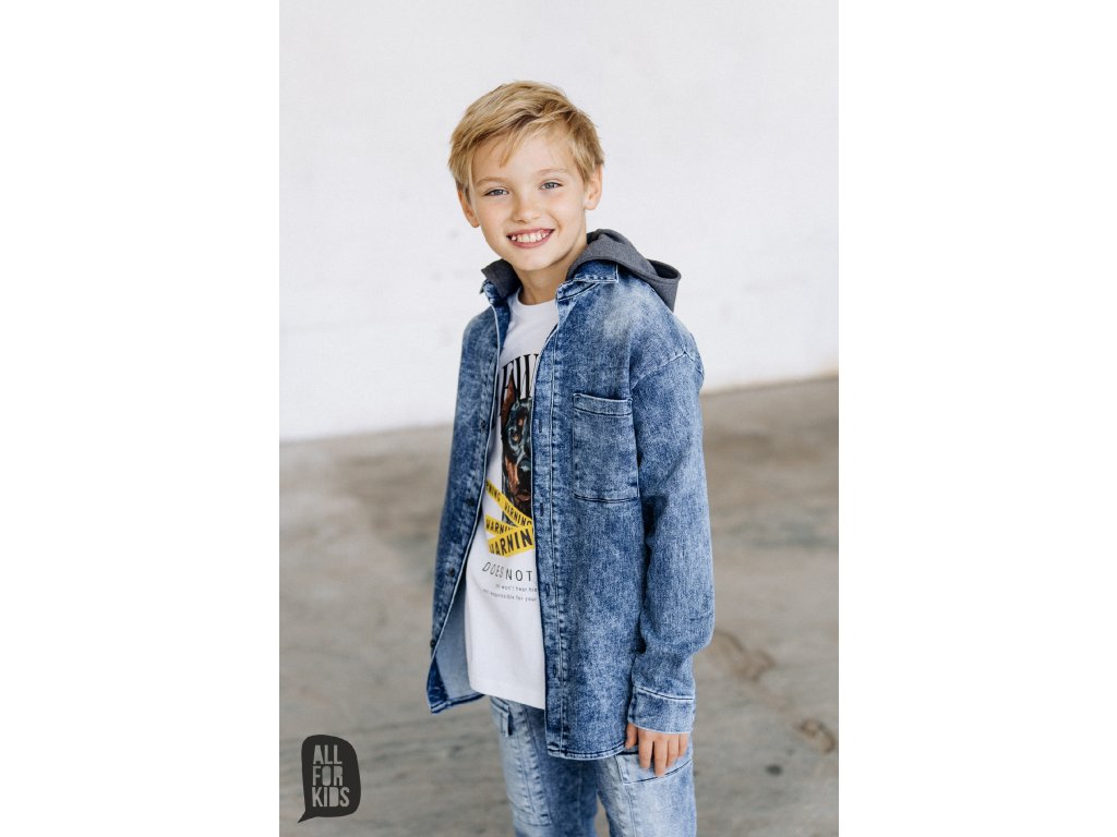 3 dielny riflový komplet bunda, nohavice a tričko s krátkym rukávom. Riflová bunda s kapucňou a 2 vreckami, vzadu s peknou potlačou Veľmi pekne vypracované riflové bavlnené nohavice v predu aj vzadu s vreckami.
