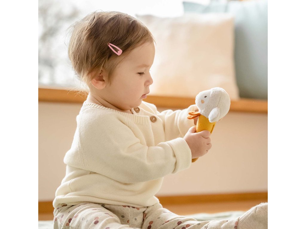 Detská hrkálka je ideálna pre uchopenie a maznanie a je vždy s vašim bábätkom, či už v postieľke, v autosedačke alebo v kočíku. Podporuje hmat a sluch a motoriku dieťaťa. Príjemné zvuky hrkálky ukradnú pozornosť dieťatka a dokážu ho rozptýliť aj v situáciách, keď ho niečo rozosmutnilo natoľko, že sa rozplakalo.