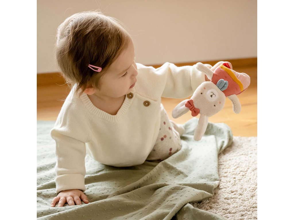 stimuluje detské zmysly a podporuje rozvoj ich motoriky. Hračka vydáva praskacie