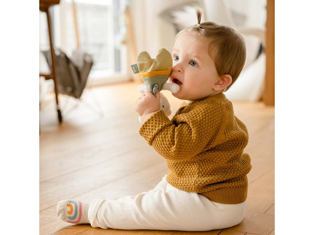 Malá hračka v dizajne obľúbeného zvieratka z kolekcie fehnNATUR hravo stimuluje detské zmysly a podporuje rozvoj ich motoriky. Hračka vydáva praskacie zvuky, ktoré deti priamo milujú a vždy ich dokážu zabaviť a zaujať ich pozornosť.