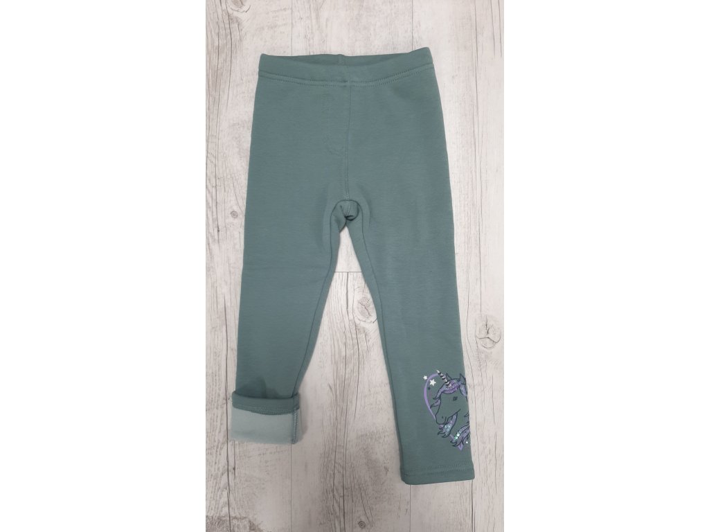 Dievčenské legíny zateplené kožúškom zelené malý vzor