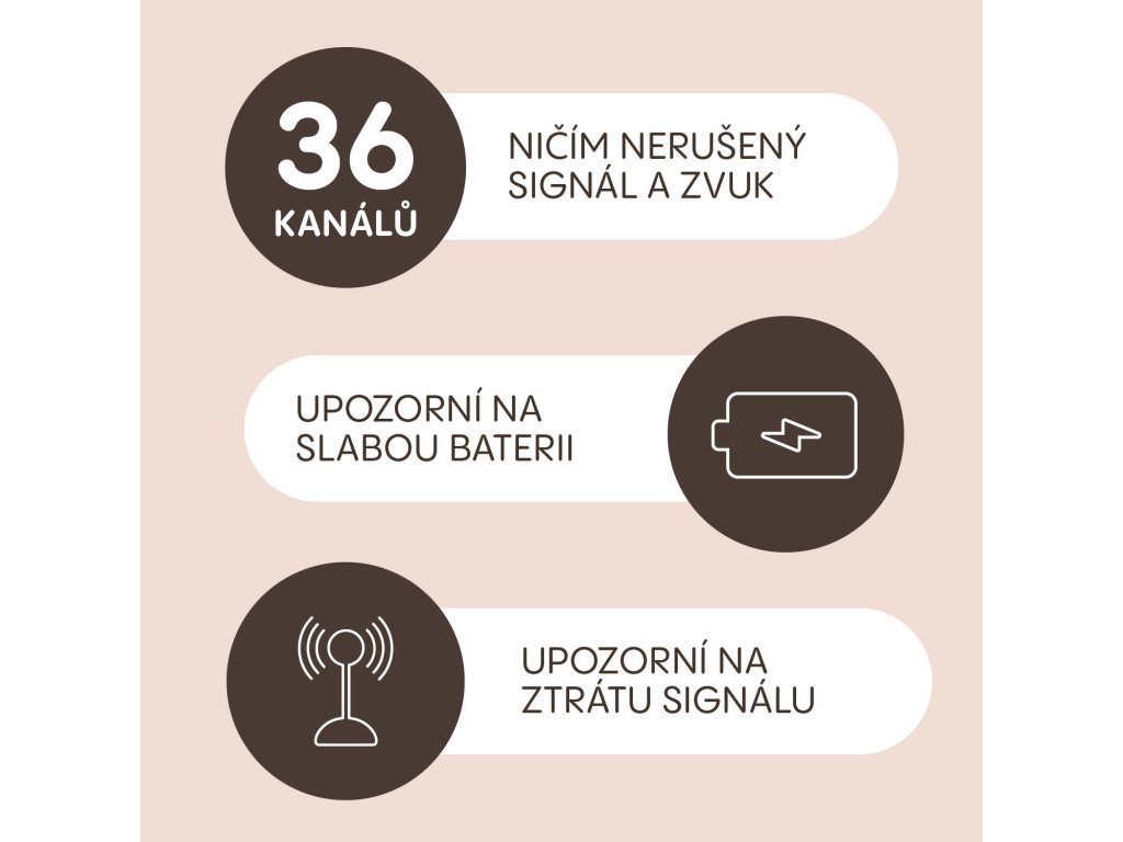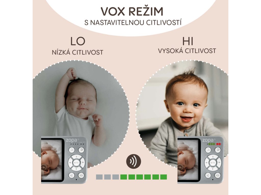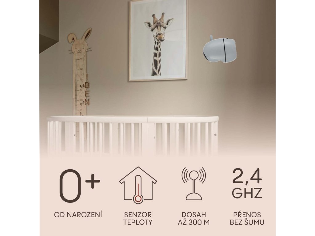Svoje dieťatko môžete kedykoľvek upokojiť na diaľku vlastným hlasom alebo mu pustiť upokojujúce melódie na príjemné zaspávanie. Integrovaný teplomer vám pomôže vytvoriť ideálne podmienky na spánok – nielenže zobrazuje aktuálnu teplotu v miestnosti, ale tiež vás upozorní na jej prekročenie. Pre pokojné noci oceníte úsporný nočný režim, ktorý automaticky vypne prenos zvuku a obrazu, keď je v miestnosti ticho. Pri akomkoľvek zvuku sa okamžite znova aktivuje.