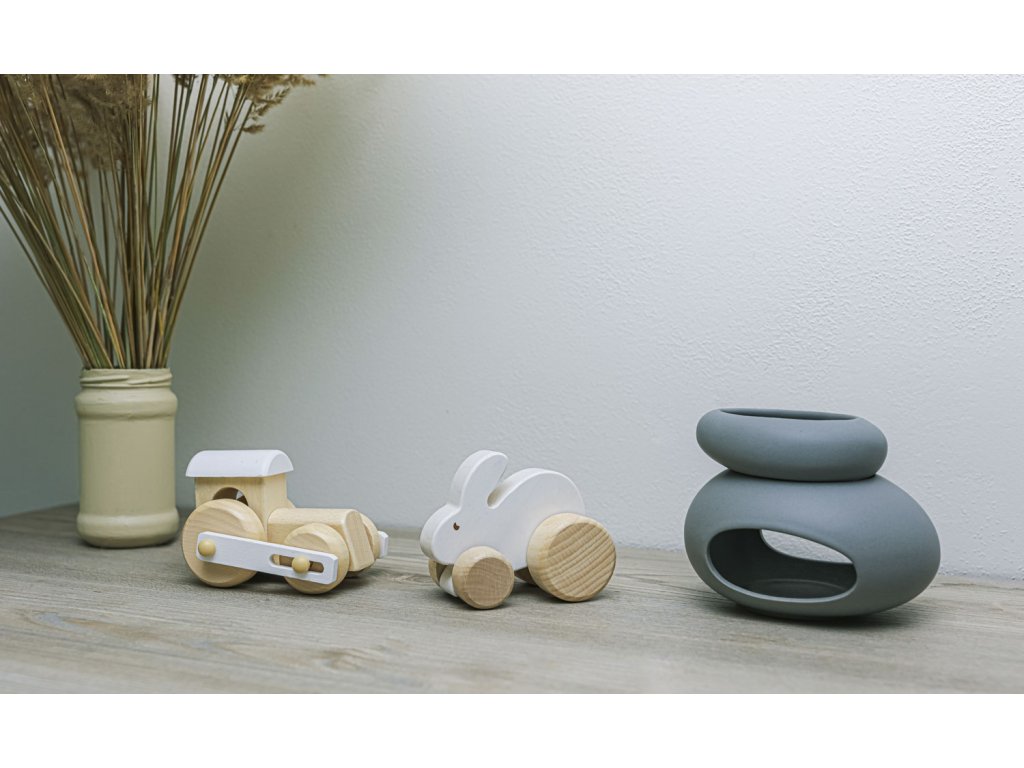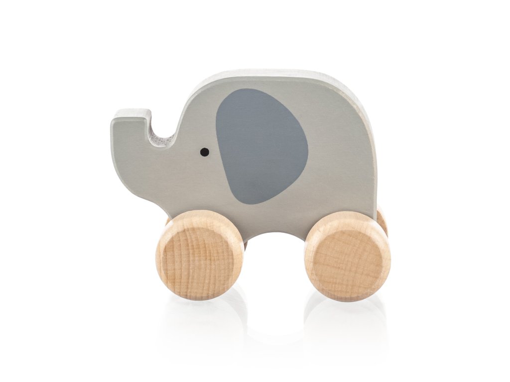 Ľahký a kompaktný jazdiaci slon je ideálnou hračkou do malých detských rúk. Je vyrobený z kvalitného prírodného dreva a natretý farbami na vodnej báze. Veľké, odolné kolesá si hravo poradia s kobercom, drevenou podlahou aj terénom ihriska.