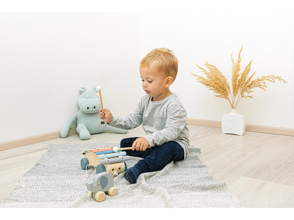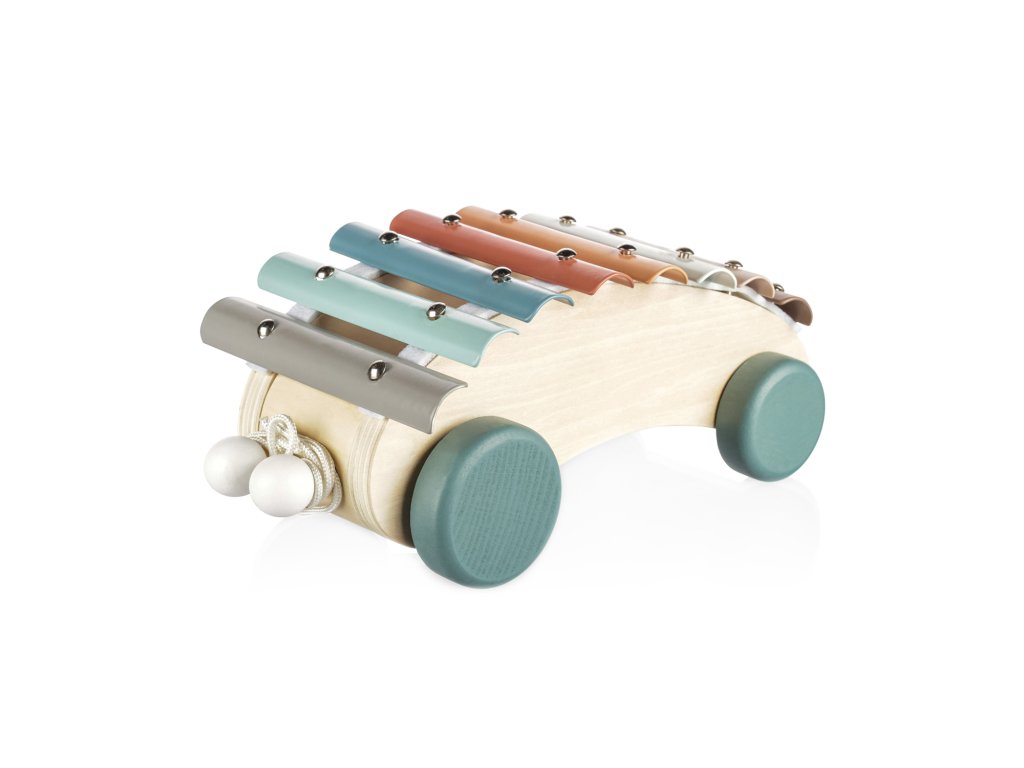 Hračka rozvíja zmysly, motorické zručnosti a tvorivé myslenie. Xylofón je tiež vybavený kolieskami a pevnou šnúrou, takže ho vaše dieťa môže ťahať.