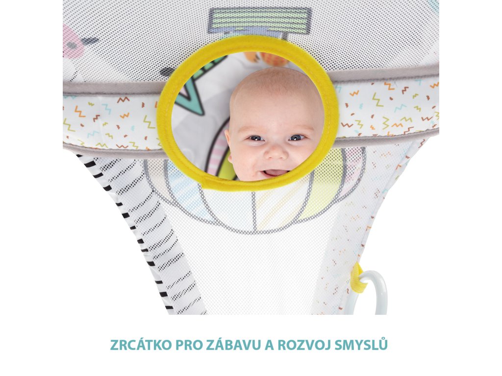 Ležiace bábätko upútajú visiace hračky, ktoré ho motivujú siahať po nich, aby ich kolísalo a trhalo. Dieťa si tak trénuje psychomotoriku. Na upokojenie si môžete zahrať peknú melódiu z niektorej zo závesných hračiek.