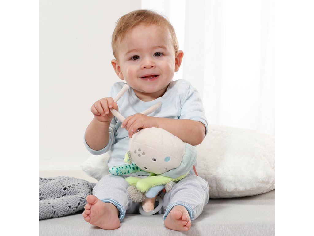 Roztomilá hudobná hračka z kolekcie Children of the Sea je skvelým spoločníkom pre deti od narodenia. Jemná uspávacia melódia ich upokojuje a dáva im pocit bezpečia. Vďaka svojej praktickej veľkosti a jemným farbám dokonale zapadne do každého prostredia doma aj na cestách.