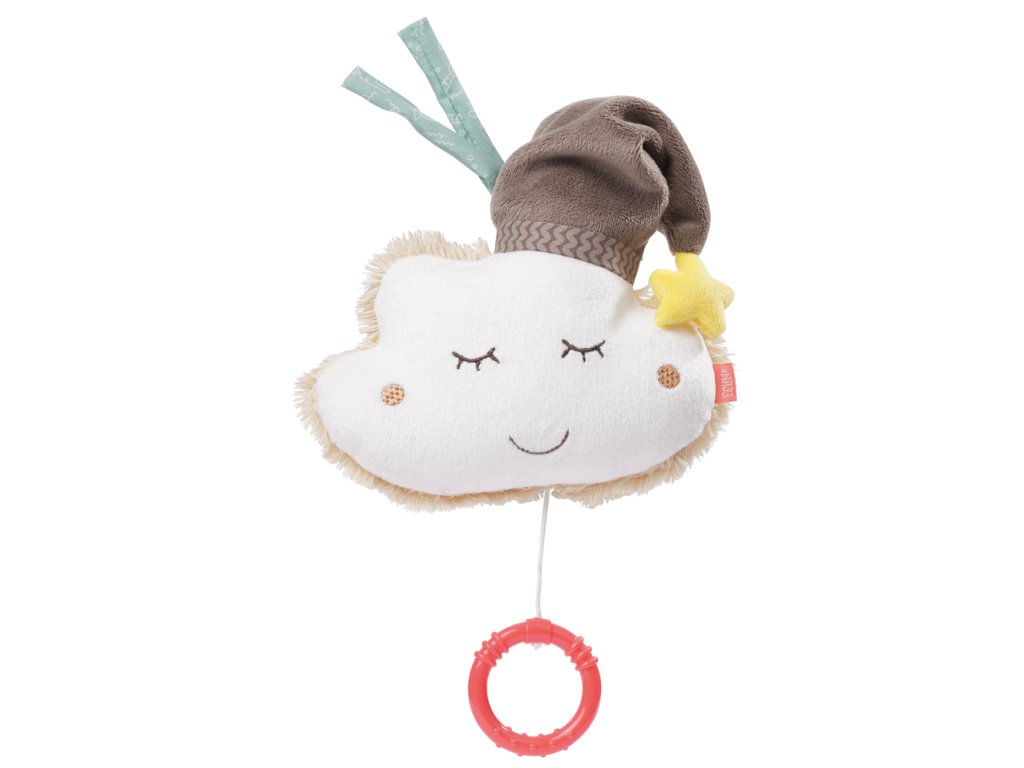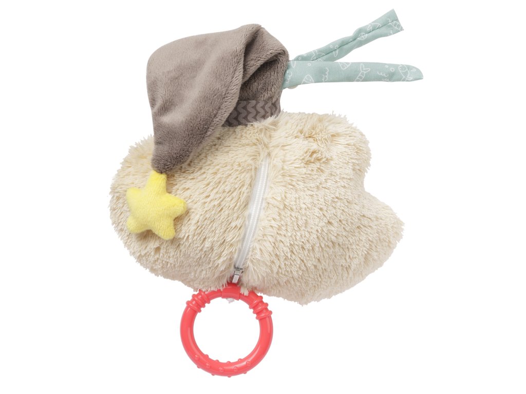 Plyšový obláčik s hracím strojčekom, ktorý sa spúšťa zatiahnutím za krúžok. Strojček možno vybrať, hračka má zips. Príjemné tlmené farby, a mäkký materiál, to všetko nabáda k maznanie a dieťa upokojuje. Vďaka dvom pásikom hračku rýchlo pripevníte na kočík, detské sedačky a detskú postieľku
