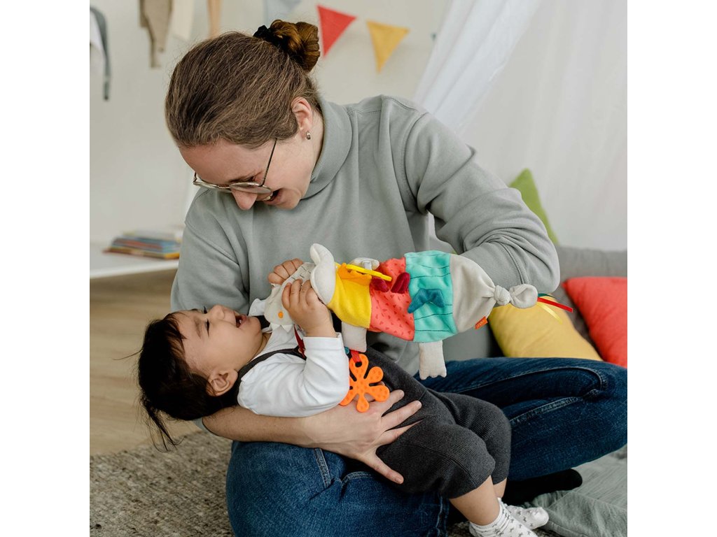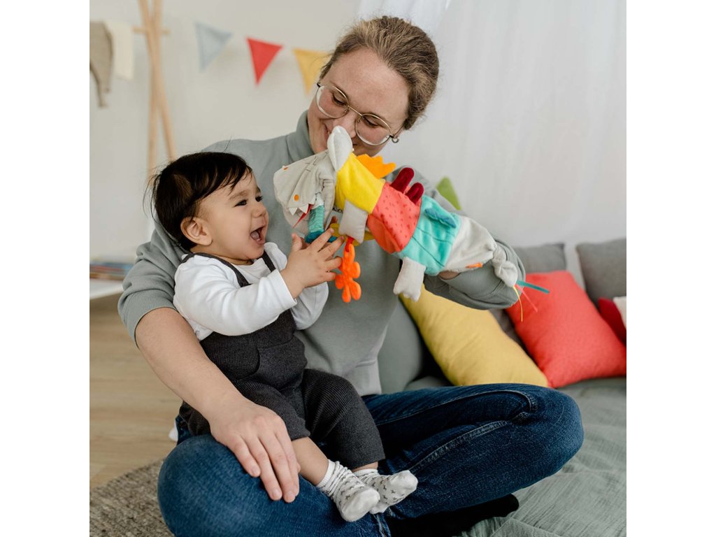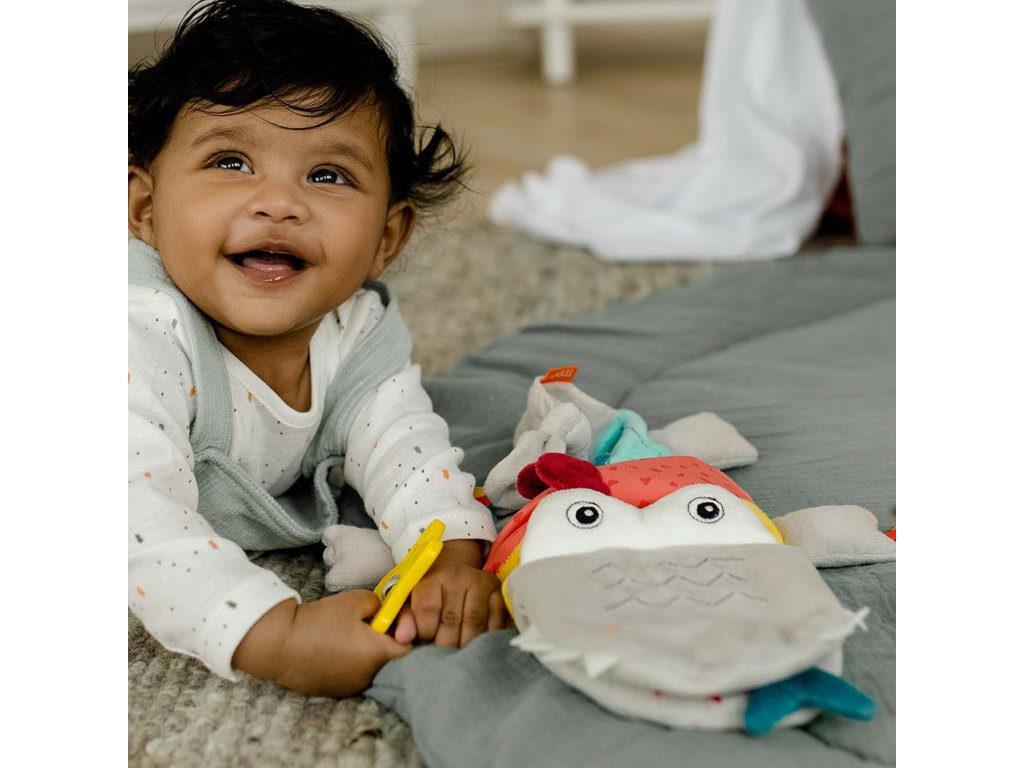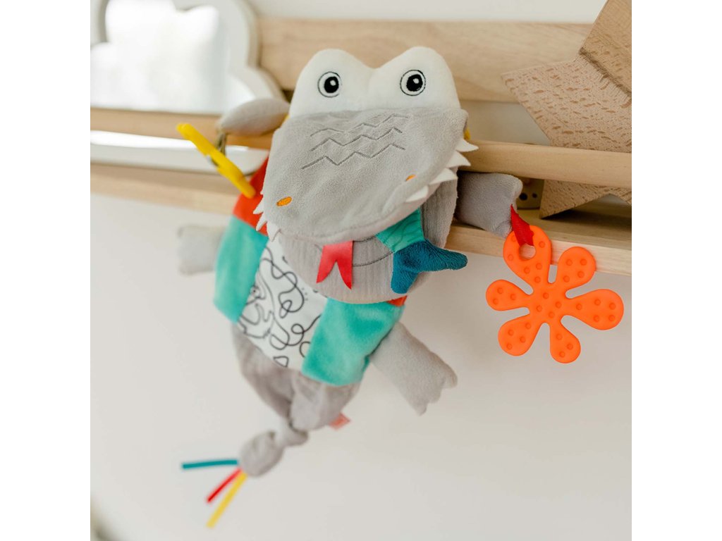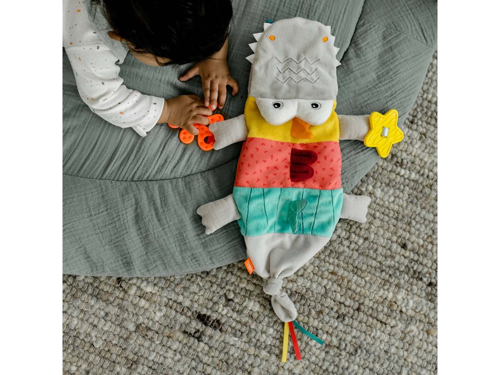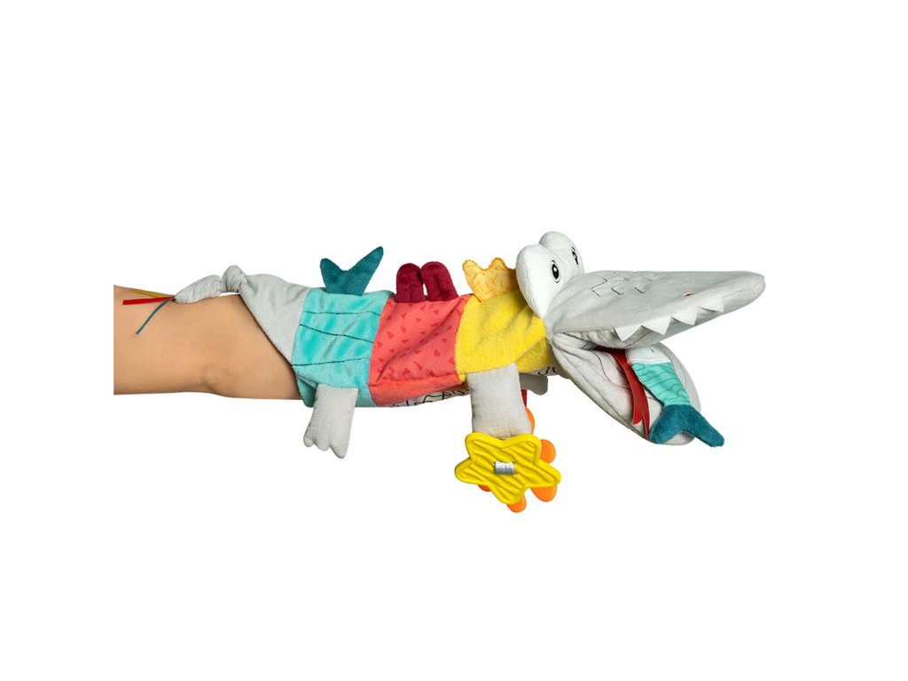 S látkovým maňáskom krokodíla je zábava z hrania zaručená. Hrkálky, praskací papier spolu s pestrými farbami vzbudzujú detskú zvedavosť a hravou formou podporujú zmysel pre zrak, sluch, motoriku a vnímanie a zároveň mäkké hryzátka pomáhajú pri prerezávaní zúbkov. Pre intenzívny kontakt medzi rodičmi, starými rodičmi alebo súrodencami a dieťaťom.