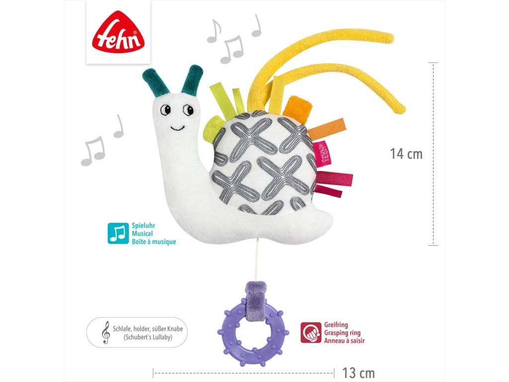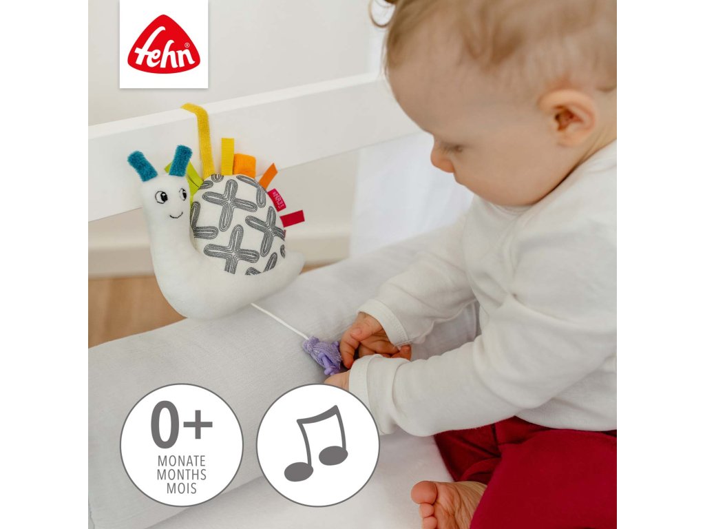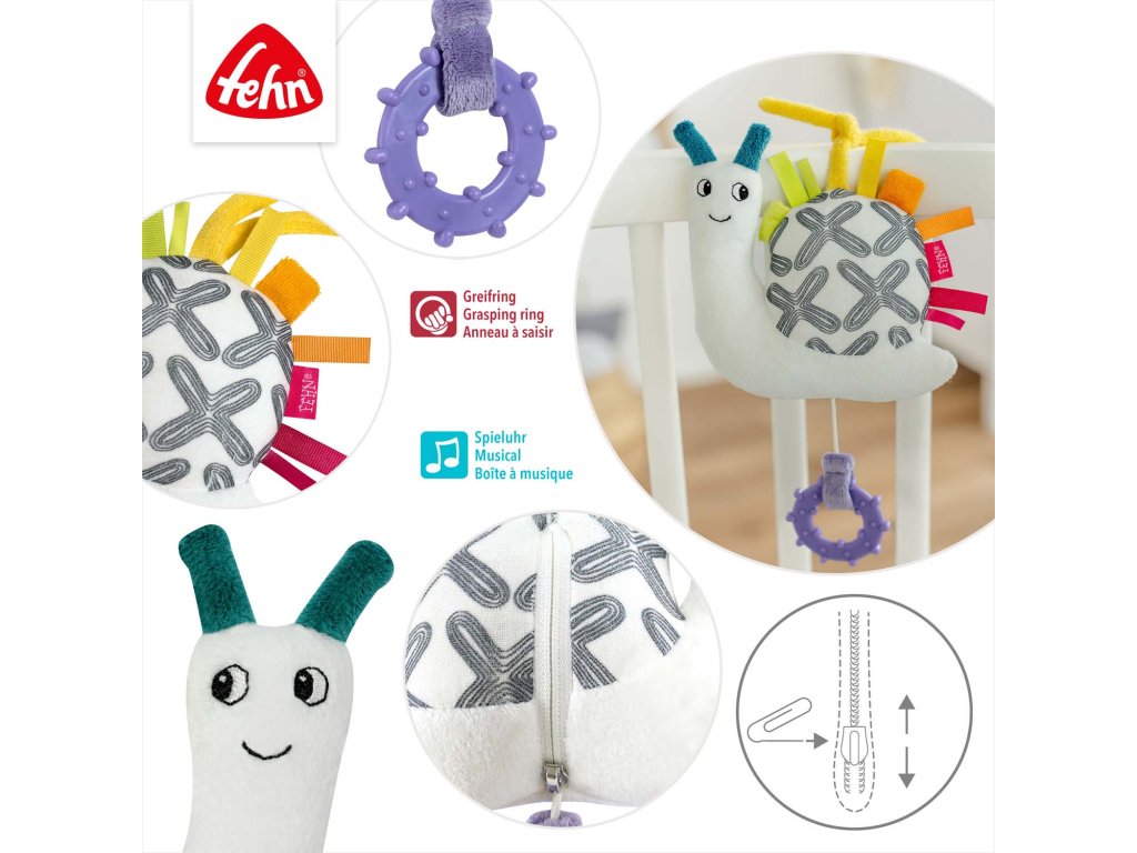 Maznáčik, hračka a pomocník pri zaspávaní pre bábätká a malé deti od narodenia. Natahovací hrací strojček s upokojujúcou melódiou Schubertovej uspávanky upokojí bábätko v každej situácii.Roztomilý slimáčik s hracím strojčekom z kolekcie DoBabyDoo Black & White nie je len prvým obľúbeným kamarátom pre novorodencov, ale tiež prináša útechu a pocit bezpečia vďaka prehrávaniu nežnej uspávacej melódie.