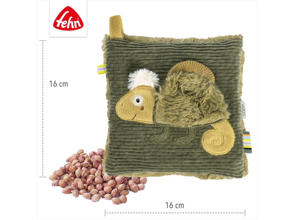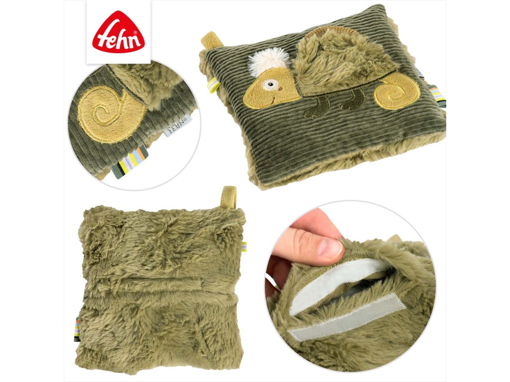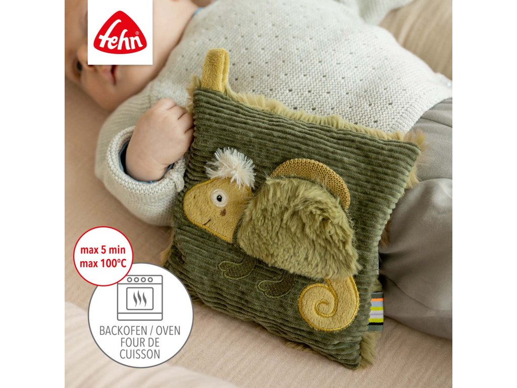 Plyšový vankúšik s odnímateľným vyhrievacím a chladiacim vrecúškom pre bábätká a batoľatá.Roztomilý vankúšik Chameleón s náplňou z čerešňových kôstok z kolekcie Lazy, Crazy & Pink je všestranný pomocník aj dokonalý plyšový kamarát. Vnútorné vrecúško možno jednoducho vybrať vďaka praktickému zapínaniu na suchý zips – a podľa potreby zohriať v rúre alebo ochladiť v plastovom vrecku v chladničke či mrazničke.