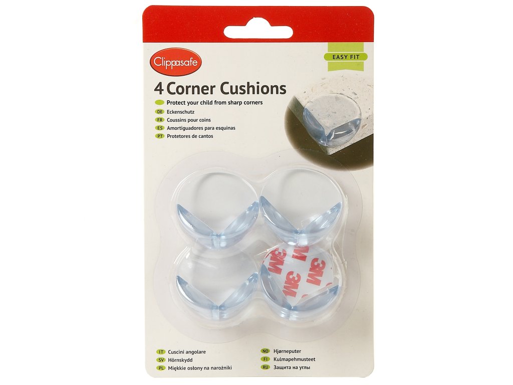 Priehľadné plastové chrániče rohov Clippasafe svojou extra mäkkosťou poskytujú maximálnu ochranu malým deťom počas ich začínajúcej chodiacej fázy. Spoľahlivo tak zakryjú ostré rohy sklenených stolíkov, poličiek, krbov a iného nábytku, do ktorého batoľatá môžu často naraziť.Dodatočné parametre