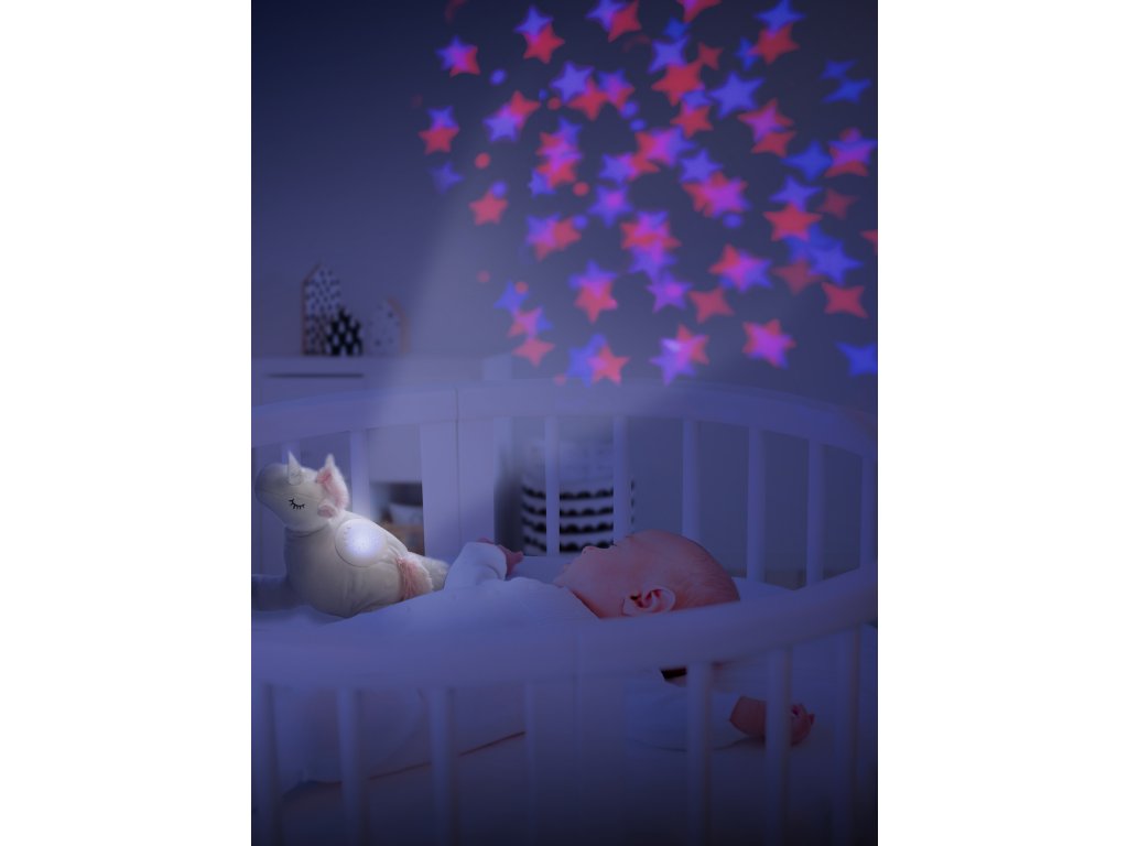 Ak by ani hviezdne nebo nestačilo k pokojnému zaspávaniu, zvieratká deťom zahrajú ľúbivé melódie alebo napodobní príjemné zvuky prírody, ako je štebot vtáčikov. Najmenšie bábätká ocenia zvuk pripomínajúci tlkot srdca tak, ako ho počuli v brušku u mamičky.