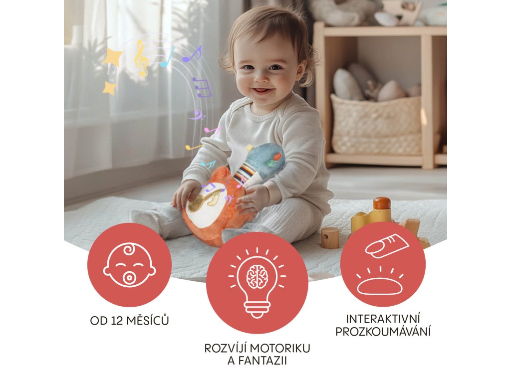 hudby a rytmu s týmto interaktívnym plyšovým nástrojom! Stačí jemné poklepanie a