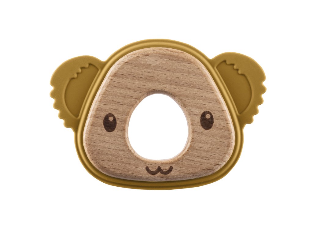 Silikónové drevené hryzátko Koala, Mustard Yellow
