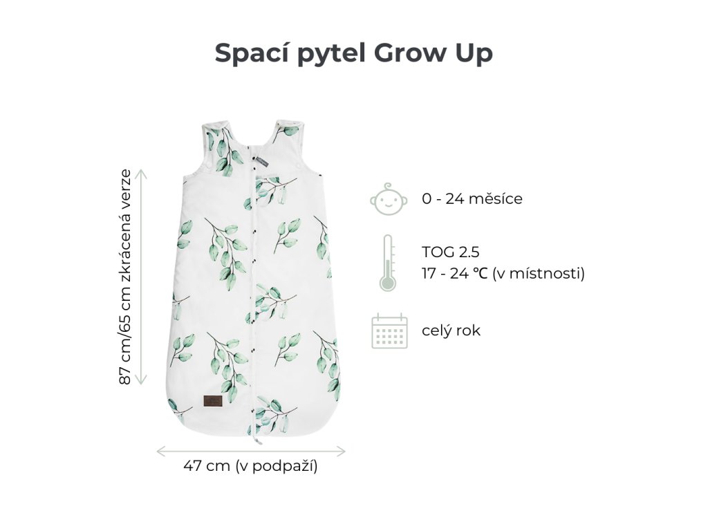 Spací pytel Sleepee Grow Up Green Forest roste s Vaším dítětem! Jedná se o zcela inovativní výrobek, určený pro děti od narození do 2 let. Má nastavitelnou délku a šířku, takže se perfektně přizpůsobí aktuální velikosti dítěte.