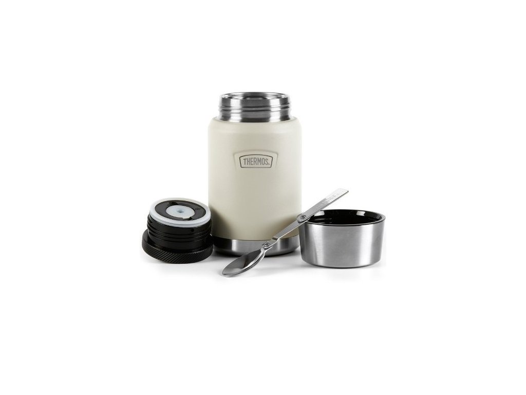 Nerezová vákuovo izolovaná termoska na jedlo. Skladá sa z dvojstenného tela termosky, uzáveru Dura-Guard s pretlakovým ventilom, skladacej lyžice a šálky. Široké hrdlo tela termosky zaručuje jednoduché plnenie, naberanie a údržbu termosky. Skladacia lyžica je vybavená dvoma kĺbmi - v zloženom stave sa zmestí do výrezu v uzávere. Uzáver je tvarovaný kvôli jednoduchému otváraniu / zatváraniu termosky. Vonkajšia strana šálky je z nerezovej ocele, vnútorná strana z odolného plastu. Dno termosky je protišmykové. Systém ako celok dosahuje výborné izolačné vlastnosti. Séria Thermos Icon sú produkty v nadčasovom dizajne vyznačujúcu sa jednoduchosťou, zvýšenou odolnosťou a jednoduchou údržbou.